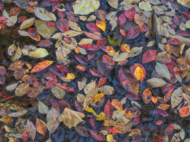 Since we’re so close to New England, the fall colors on Long Island are generally overlooked. We have no mountains, but we do have wetlands. Here on the east end, the wetland foliage is now at its peak and Trout Pond in Sag Harbor is especially vibrant. Late yesterday afternoon I photographed these leaves in the muddy shallows along the south end of the pond. It’s a pleasant hike along the edge, and if you’re feeling ambitious, you can continue onto the trails which climb the glacial moraine south of Sag Harbor. There you enter woods dominated by oaks and Mountain Laurel.
