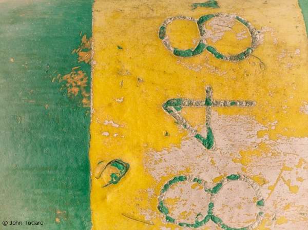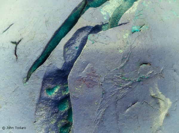 Buoys are marked up by fisherman. They paint them with stripes and carve numbers into them so that they can ID their traps. When buoys break free of their lines, they float around for months–aging, cracking, and acquiring all sorts of grit. I’ve come across some that have been out there for so long that they resemble shrunken heads. Eventually they arrive here in flotsam, with the nicest ones fully ripened. To me, the best specimens have great complexity of colors and textures. This happens after many months of marination out there in the brine.