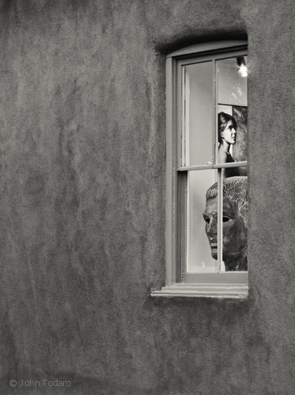 This is a photograph from Santa Fe which I recently began printing in black and white. In the earlier color version (link below), I was hearing too much of a “southwestern accent”…adobe walls…turquoise trim.