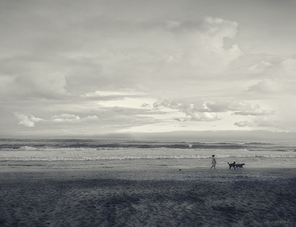 The gorgeous scene of sea, sky and light is enhanced and changed by the inclusion of the dog walker. It becomes a more personal picture. “We” become the walker;our senses come to life. Great image. Makes me wonder why I don’t visit the ocean more often.
