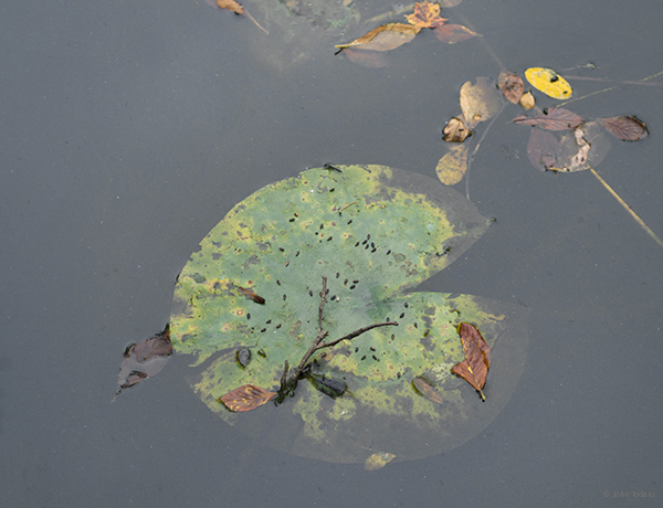 It’s so much harder to do this successfully, than to photograph the lily pad leaves when they’re nice and fresh on perfectly clear water. This one has a lovely meditative quality.