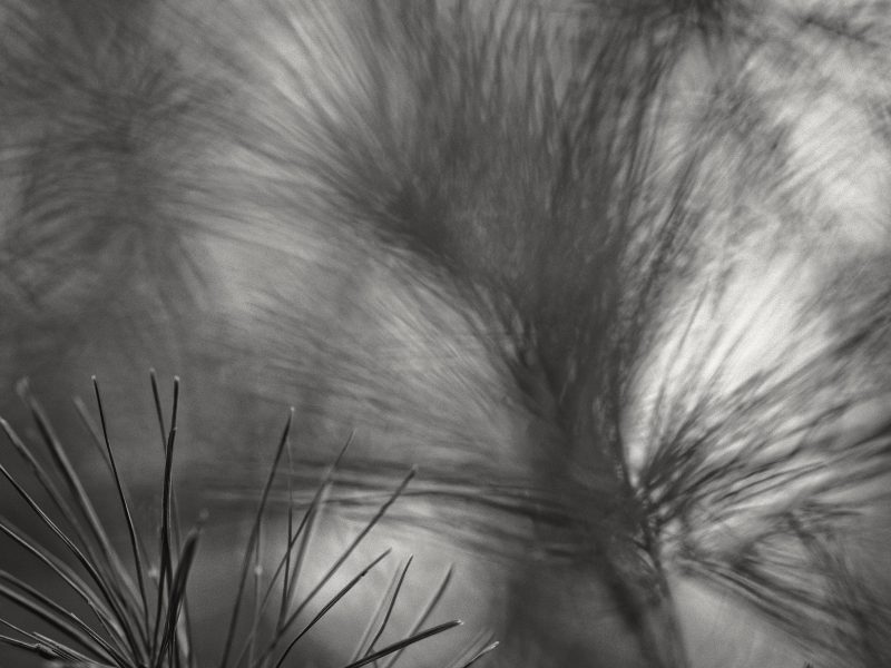 You’ve been to this universe indeed. 🙂 What I did here, (and on others recently) was shoot with my 75 f 1.8 at very close range with the widest aperture. Later, I’m giving the images a duotone treatment and, in this instance, I dialed back some detail into the soft focus (ie. the needles which were only inches away from the main branch in the foreground). I was hoping to get results: something smoky…soft…resembling an ink and charcoal sketch.