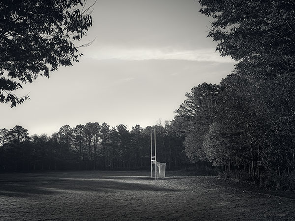 Wow! Who would think to look for beauty in a football/soccer goal! I like the way the field and goal are enveloped by the surrounding trees. One can almost here the voices of the children who play on this field, a sound that is so much a part of this area, but for many months disappeared. I run around the perimeter of a high school field and pass a goal post such as this on my run. I won’t be able to pass it now without thinking of this picture. Very nicely done.