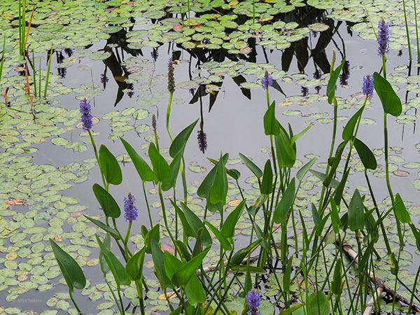 Thanks Lynn, good points. The reflections are from more pickerelweed outside the the picture at the top (not sure if that’s easy to figure out). I agree that a warmer look would’ve complicated this rather busy image considerably.
