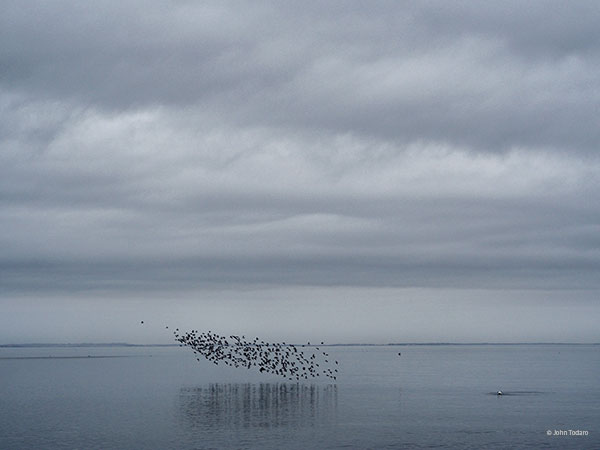 The shape of the flock, that one lead bird, the reflection, the layers of clouds, the distant horizon, it all adds up to an ordinary, extraordinary experience.