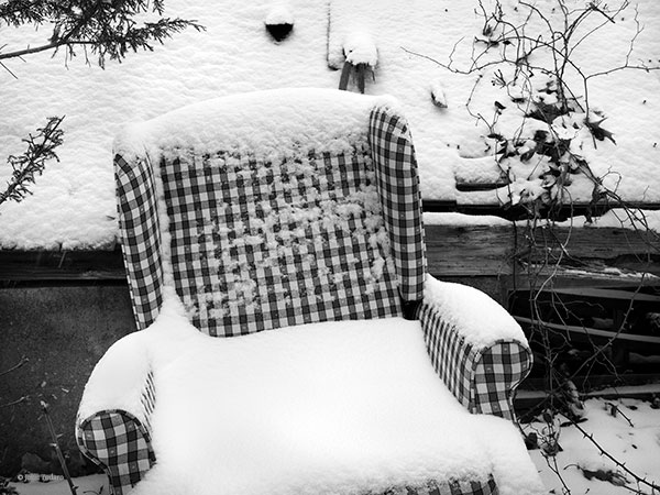 A great picture that somehow endows the chair with animation and personality. The chair itself looks like a relic from depression era South Dakota. A great feel to it.