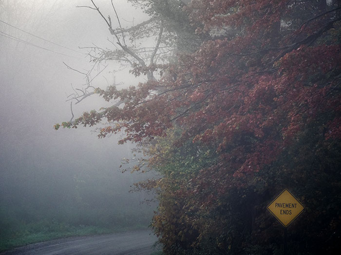 Something scary about this one. The pavement ends to what? A cliff obscured by the fog? Excellent!
