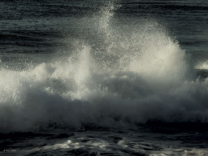 The difference in tonal character of the breaking waves between this image and the previous one is striking even while the respective foreground and background tones are so similar. Nice pairing, John.