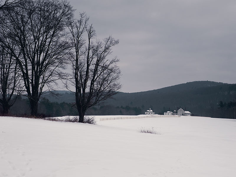 The season of “gray” clouds against white snow fields and dark tree silhouettes. A restful combination where you can see yourself behind a window in one of the rural houses.