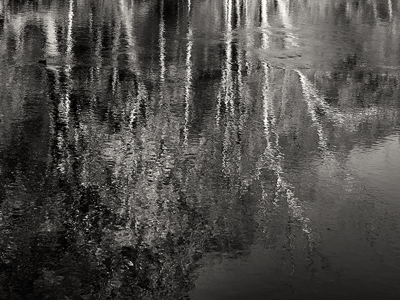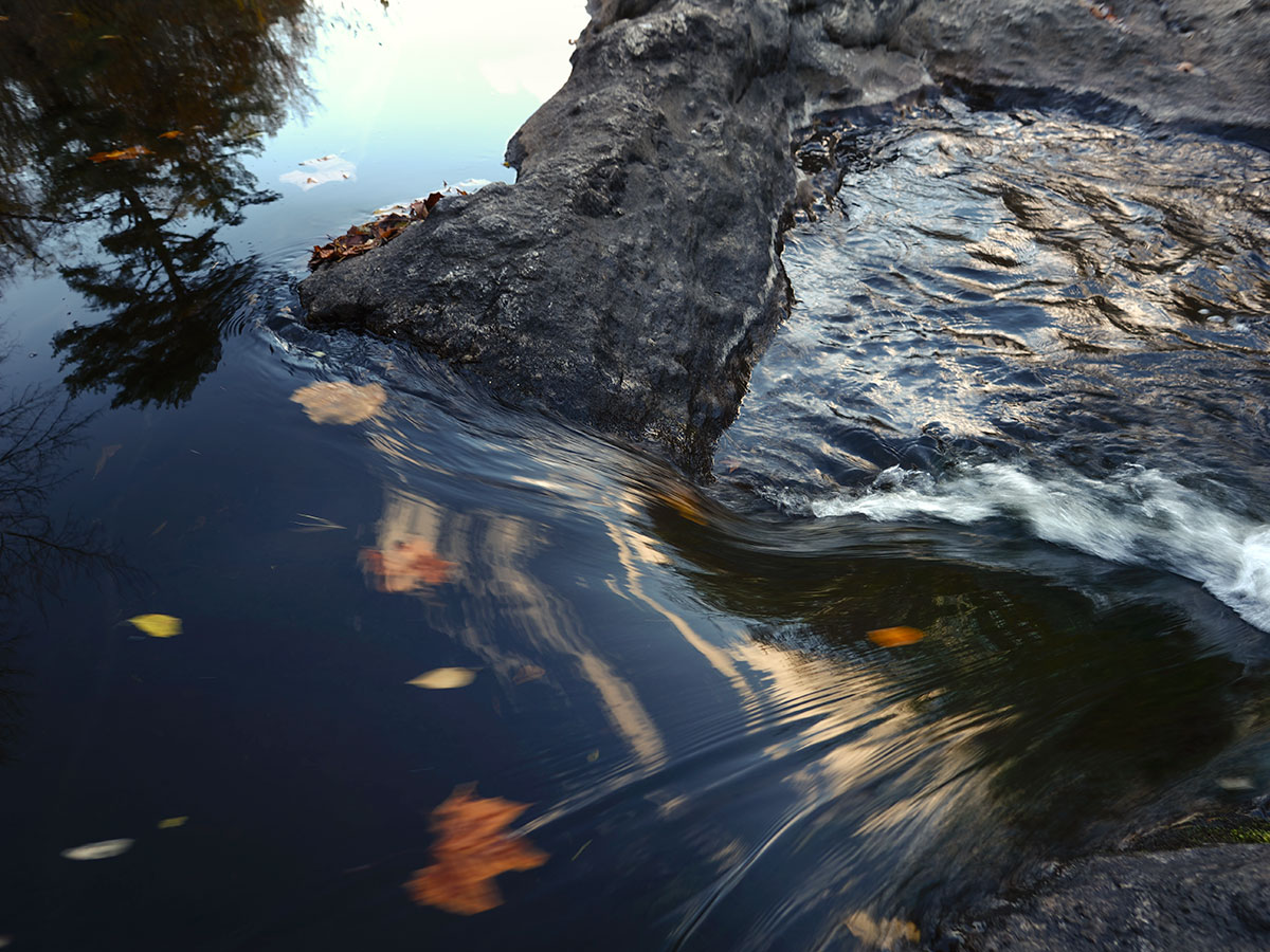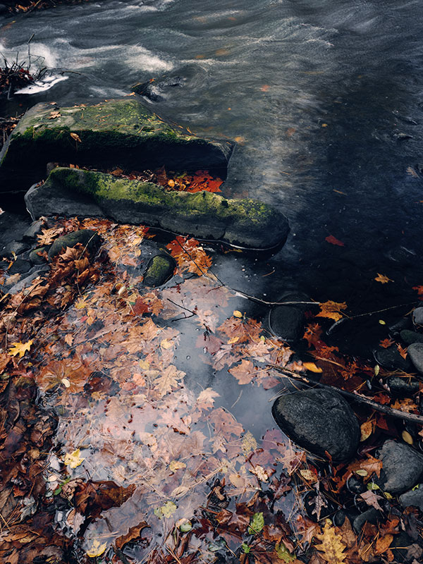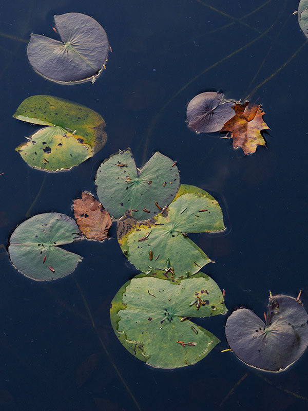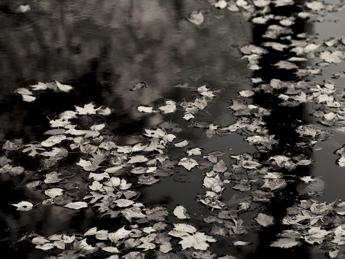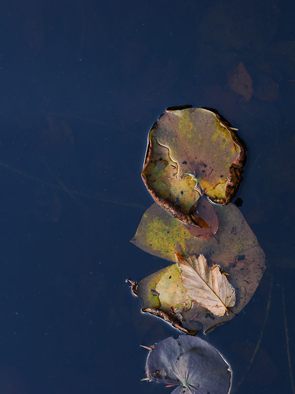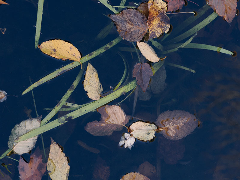 The smoothness of the reflection seen with the fresh shapes of fallen leaves conveys a pleasing sense of surrealism to me.