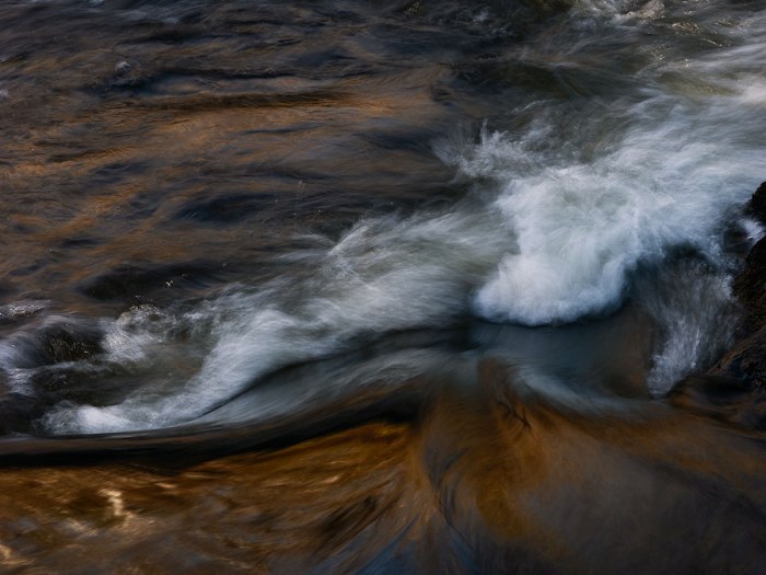 I returned to the Farmington River the other day; the forested stretch of rapids better known as Satan’s Kingdom. With a handheld camera, I shot a few dozen neutral density variations from a rock with an impressive chute only a few feet below. The autumn leaves were getting sucked into the frame and plunged past like orange comets. Like so many other things in life, it’s a capture process with general parameters, but you don’t know what you’re getting.