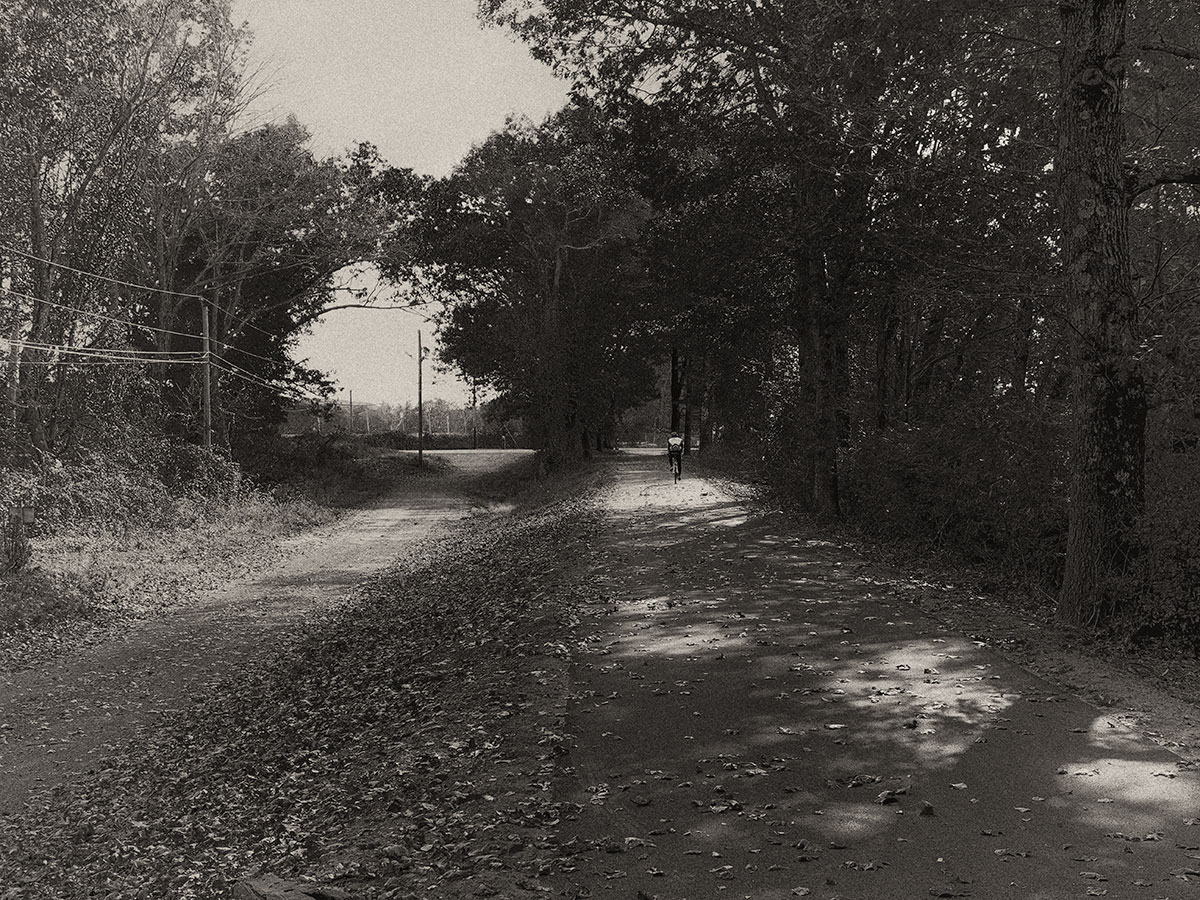 The driveway is curling into the shadows of late November. It is caught, taken to the computer to be bathed in a light sepia tone and shared throughout the world the next morning.