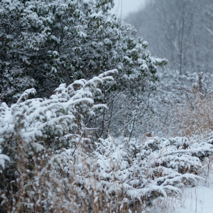 The long format picture conveys what much of the area looks like now: snowy woods with many square miles of mountain laurel. For me, all that cold and quiet is welcome news.