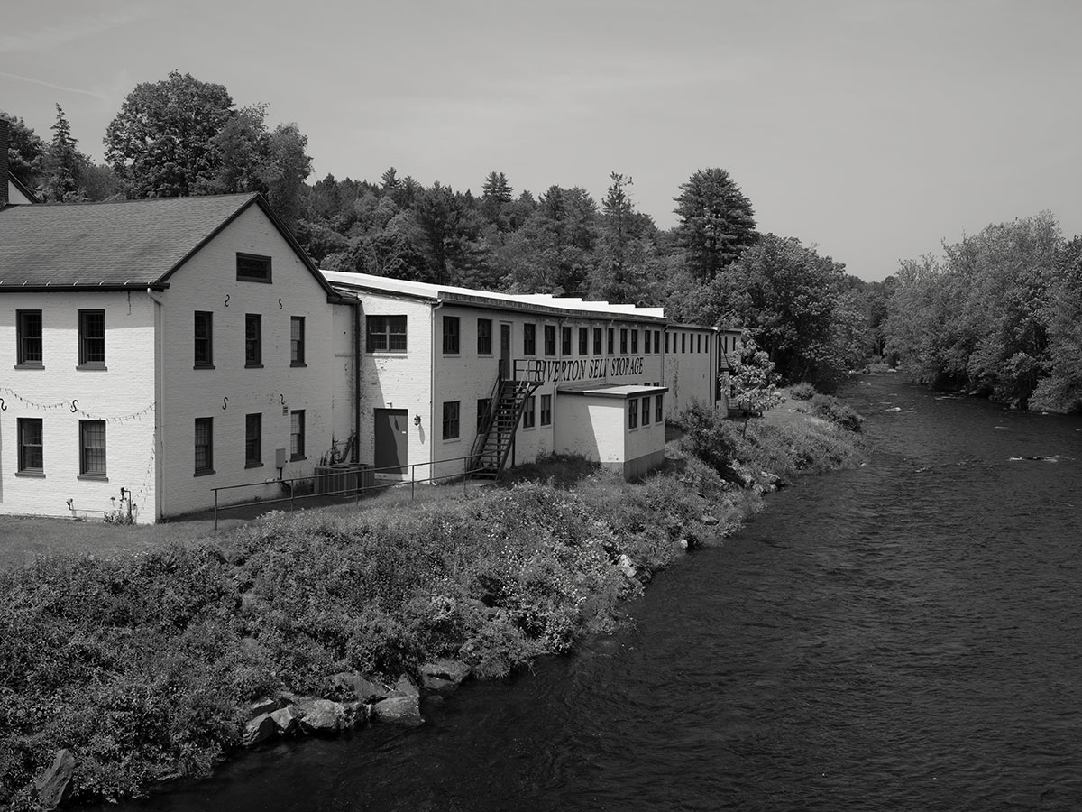 Pausing on the bridge in Riverton CT, the Farmington River is seen curving into the woods to the north. These buildings are evidence of a long history of mills, beginning with Hitchcock chairs and a fabric printing operation in the 19th century. A short walk north along the river leads to an interpretive trail and abandoned cellars and mill walls dating to the 1840’s. Before the arrival of Europeans in the 1700’s, the river was a trade route and fishing area for Native Americans.