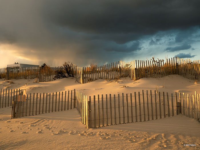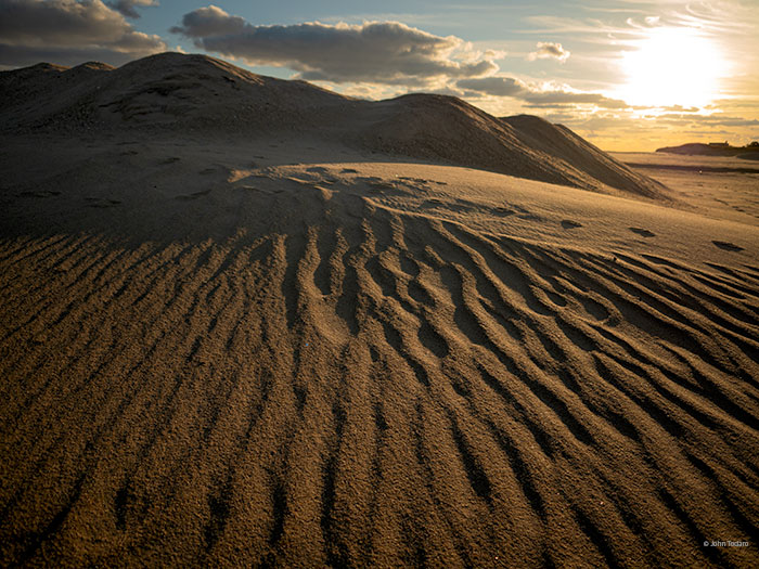 Napeague Harbor’s east shore is noted for a spectacular area of red sands and staining created by groundwater iron deposits seeping out from Hither Woods. The body of water is Long Island’s only remaining harbor never closed to shell fishing. To the east are the Walking Dunes and the several thousand acres of Hither Woods.