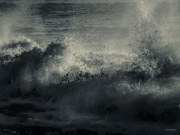 I’m working on some close-ups of breaking waves taken over the last few weeks. The color tone is reminiscent of some of the earliest photographic processes, especially tintypes and ambrotypes. The grain is produced by salt spray and from shooting into the sun. I didn’t want much in focus in the pictures, mainly the plane where the break is unfolding.