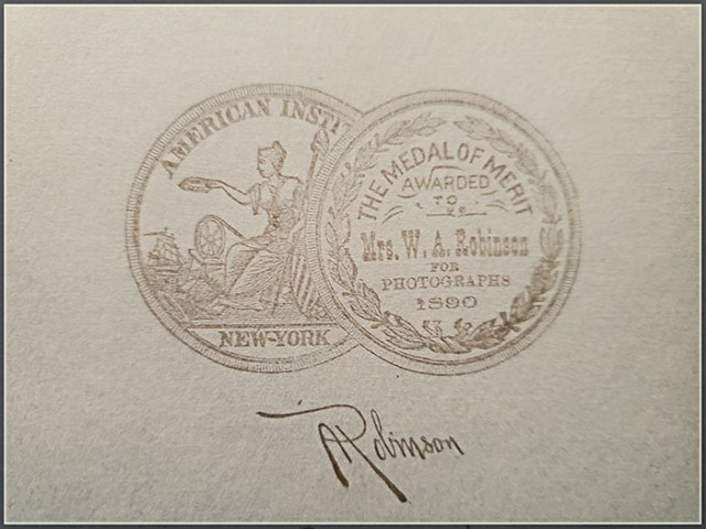 “Mrs. R” had moved to New York from Chicago in the early 1880’s with her husband William and his business partner Alfred Roe (both of whom were also photographers). She worked for them for a time, but left in 1889 to open her own studio, followed by a second a few years later. In 1890, she displayed her work at the American Institute winning an award for her prints. Running a photography business at that time meant being confident with a large camera, indoor lighting, glass plate development, ordering equipment, making prints and staying on top of technology that was changing quickly. And of course, there was also a staff to supervise.