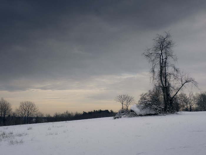 The pictures were taken in soft light, so I avoided ratcheting up the contrast. There’s ample light reflected in snowy woods, so I wanted to communicate that. Aside from that, it’s been very cold, so I’m picking my pictures carefully. That sort of selectivity can be a good thing and reminds me of when I was shooting 12 images on a roll of 120 film.